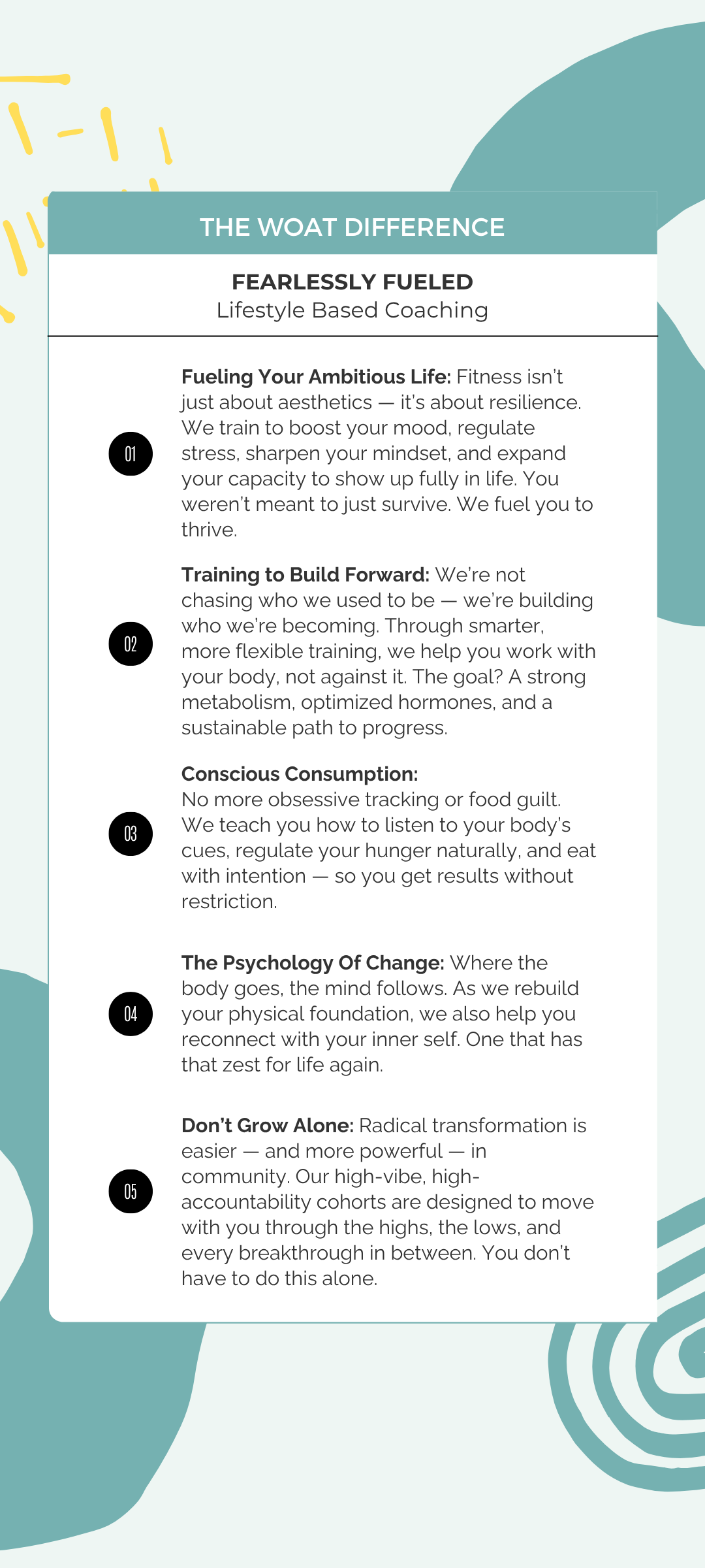 I’m Hailey —coach, mom, and founder of WOAT, a women-led coaching company that’s helped over 700 women find strength without obsession and confidence without compromise.